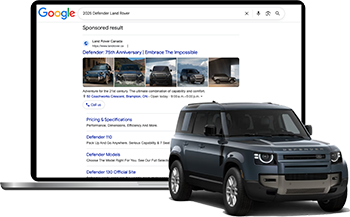 Fully integrated with your inventory and powered by vehicle-specific content, our platform uses data-driven insights to optimize your ad strategy with a focus on high-converting short- and long-tail keywords — ensuring maximum ROI